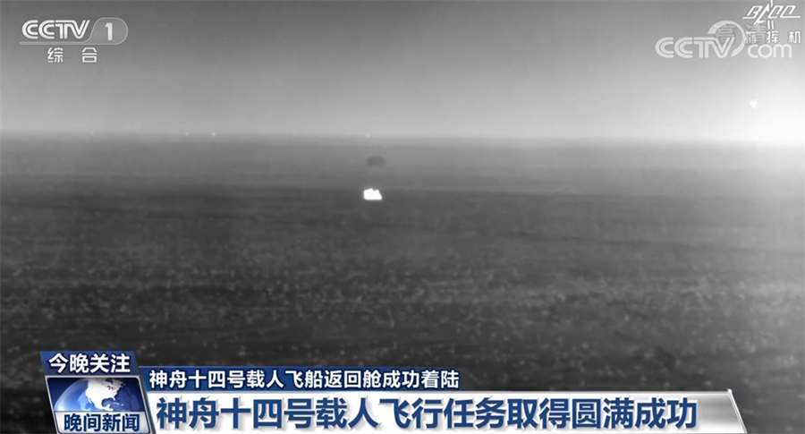 返回舱成功着陆后,担负搜救回收任务的搜救分队及时发现目标并抵达着陆现场。返回舱舱门打开后,医监医保人员确认航天员身体健康。
