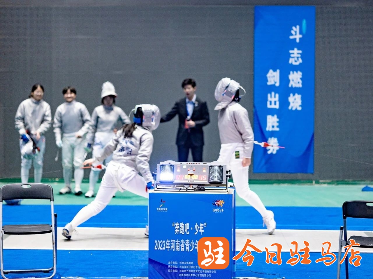 比赛中,运动员们身着防护服,戴好面罩,在剑道上你攻我防,上演了一出又一出技巧与优雅同行、激情与紧张共存的精彩对决。新蔡县运动员在赛场上动作敏捷,剑术娴熟,尽显勇于拼搏、不畏强敌的体育精神。最终,陈文博荣获男子花剑乙组个人冠军,闫通获得男子佩剑乙组个人季军,刘烁获得男子花剑乙组个人第六名。