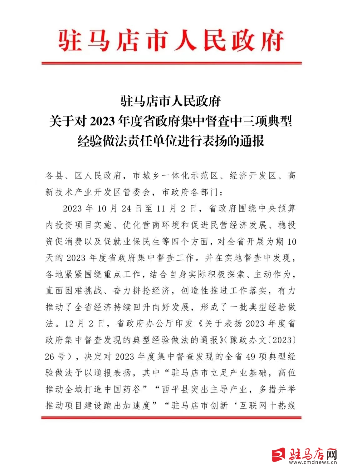 喜报!驻马店高新区喜获省政府、市政府通报表扬!-凯发游戏平台