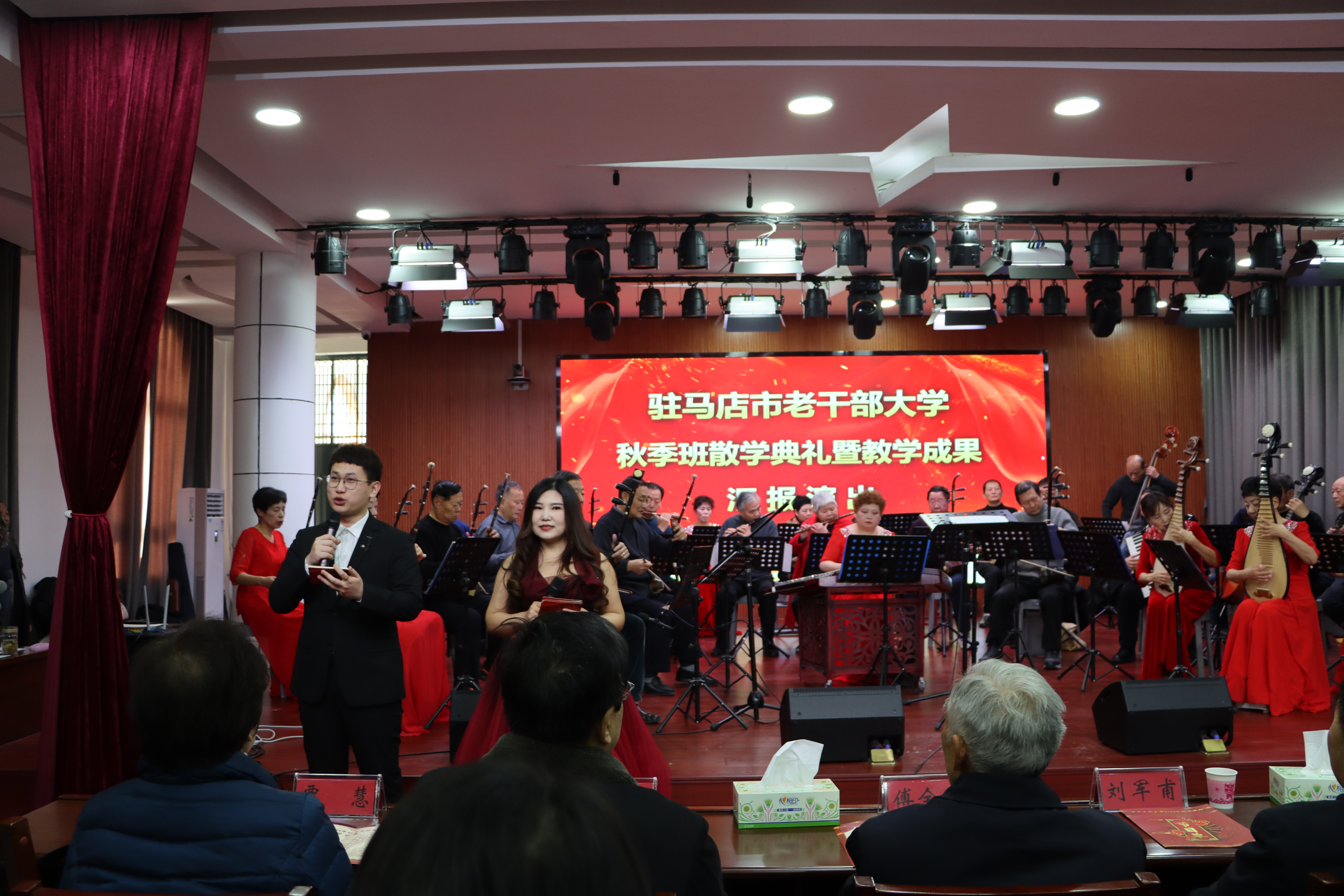 驻马店网讯 (记者 郭雪峰)日照数九冬至天,清霜风高未辞岁。12月22日,市老干部大学2023年秋季学期教学汇报演出活动在校三楼演播厅举办。市政协原主席、市老促会会长、市老干部大学名誉校长刘军甫,市人大常委会原副主任、市老干部大学副校长傅全华,市委组织部副部长、老干部局局长王胜利,市委老干部局二级调研员闫长见,副局长孟文华、许洪霆,三级调研员贾慧等有关领导一同观看了节目演出,市老干部大学师生共500余人欢聚一堂、其乐融融。
